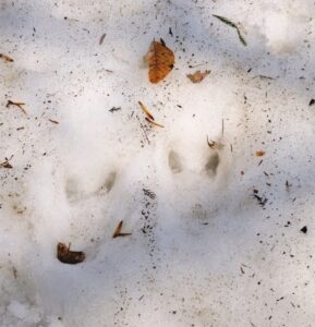 雪の上には、クッキリとニホンカモシカの足跡。