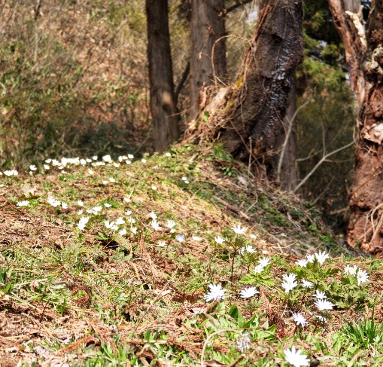 登り口のキクザキイチゲの群生。
